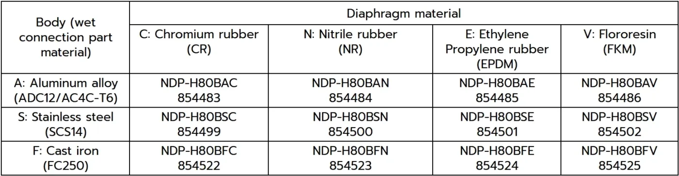 *Cast iron (FC250) NDP-H80BF series has screw specifications for material connection, and the size is Rc3.