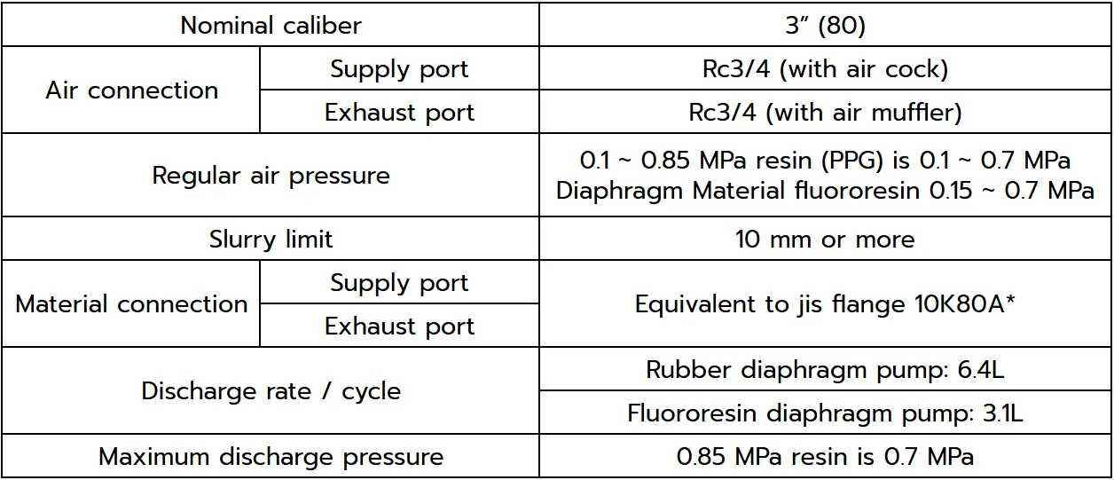 Specifications Caliber 3” (80A) Maximum discharge rate approx. 600 L/min